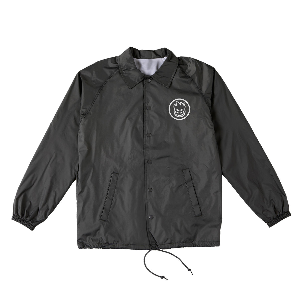 Button up coaches jacket with screen printed front and back graphics.